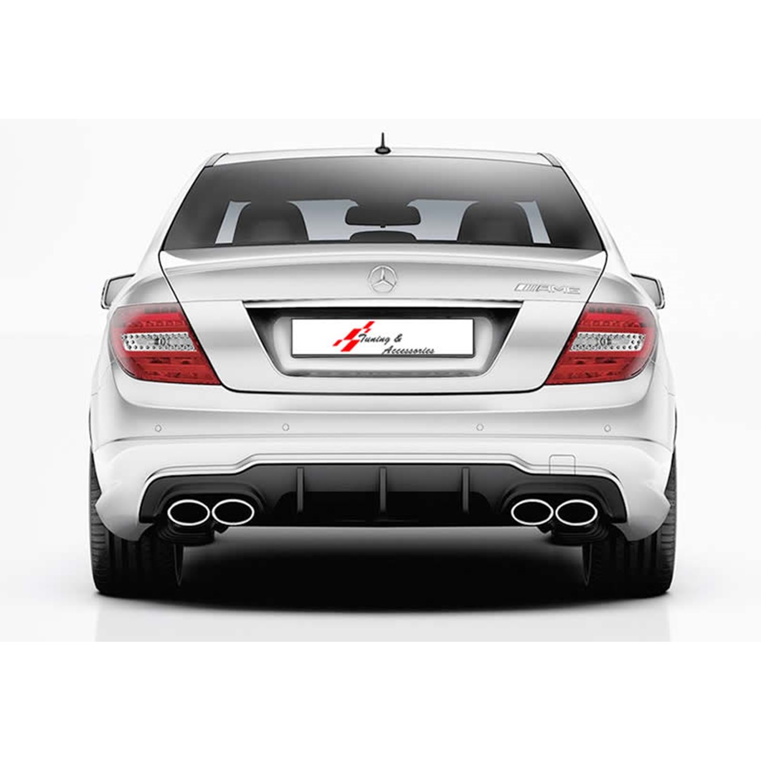 W204 AMG Rear Diffuser Piano Black Left + Right Outputs Vacuum Plastic / 2007-2011